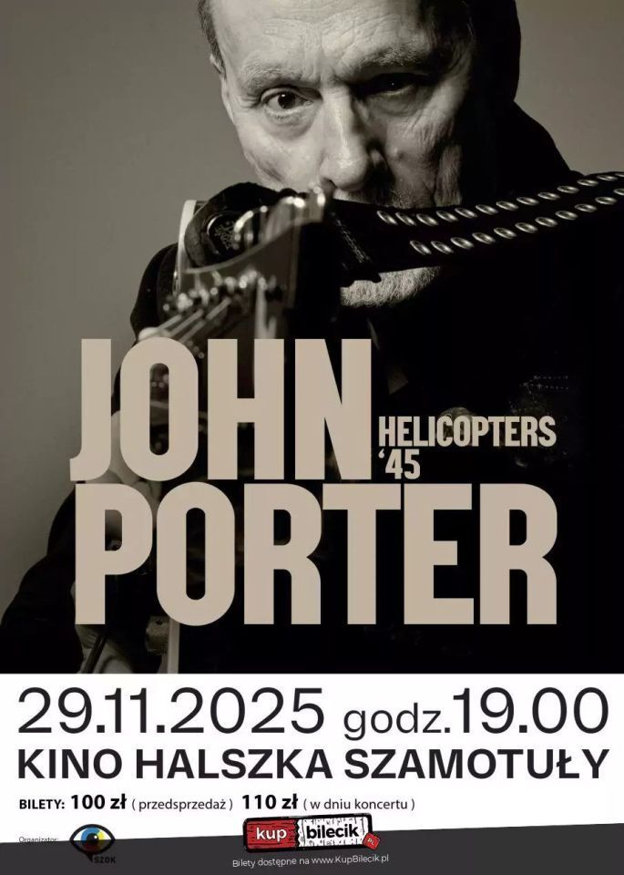 Zapraszamy na wyjątkowy koncert, który zabierze słuchaczy w piękną muzyczną podróż. To nie tylko świętowanie wydania legendarnego albumu "Helicopters" uważanego za podwaliny polskiego rocka lat 80-tych. To również hołd dla wieloletniej artystycznej drogi artysty, który na stałe wpisał się w historię rocka. Podczas koncertu usłyszymy nie tylko utwory z "Helicopters", ale również inne klasyki z bogatego repertuaru Johna Portera. Wydarzenie zostanie wzbogacone o nowoczesne aranżacje i specjalne efekty wizualne, tworząc niepowtarzalne doświadczenie dla wszystkich fanów.